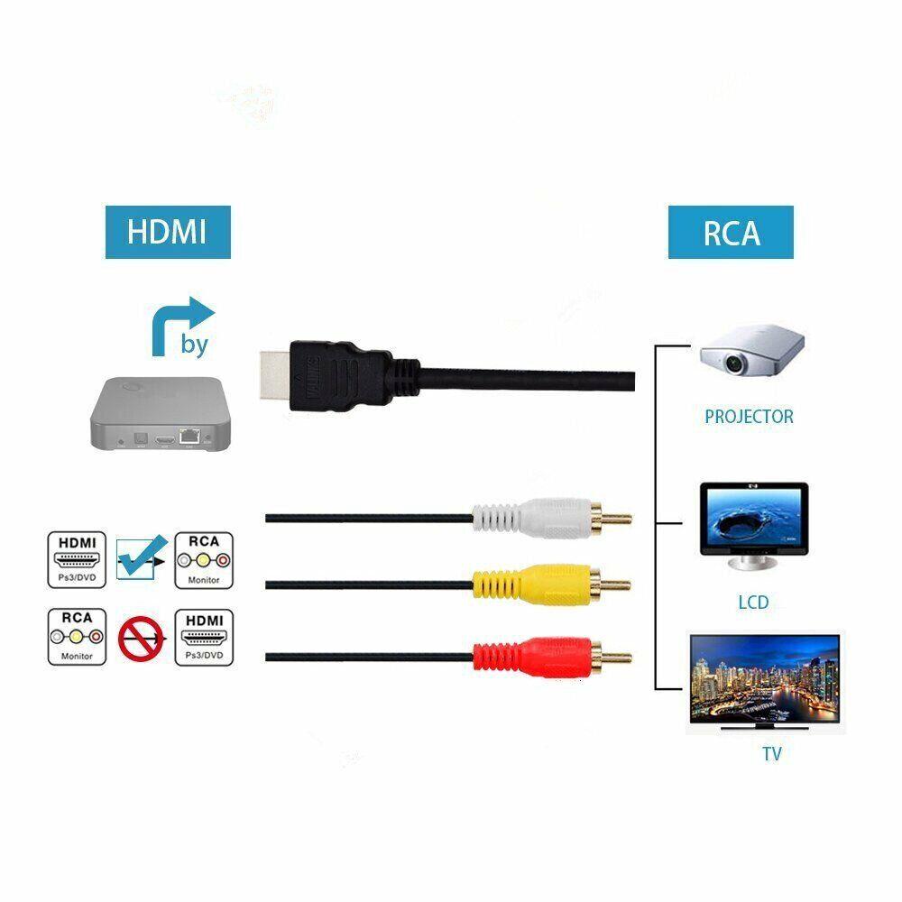 – HDMI to RCA cable is designed to connect and transfer signals from HDMI port to RCA port