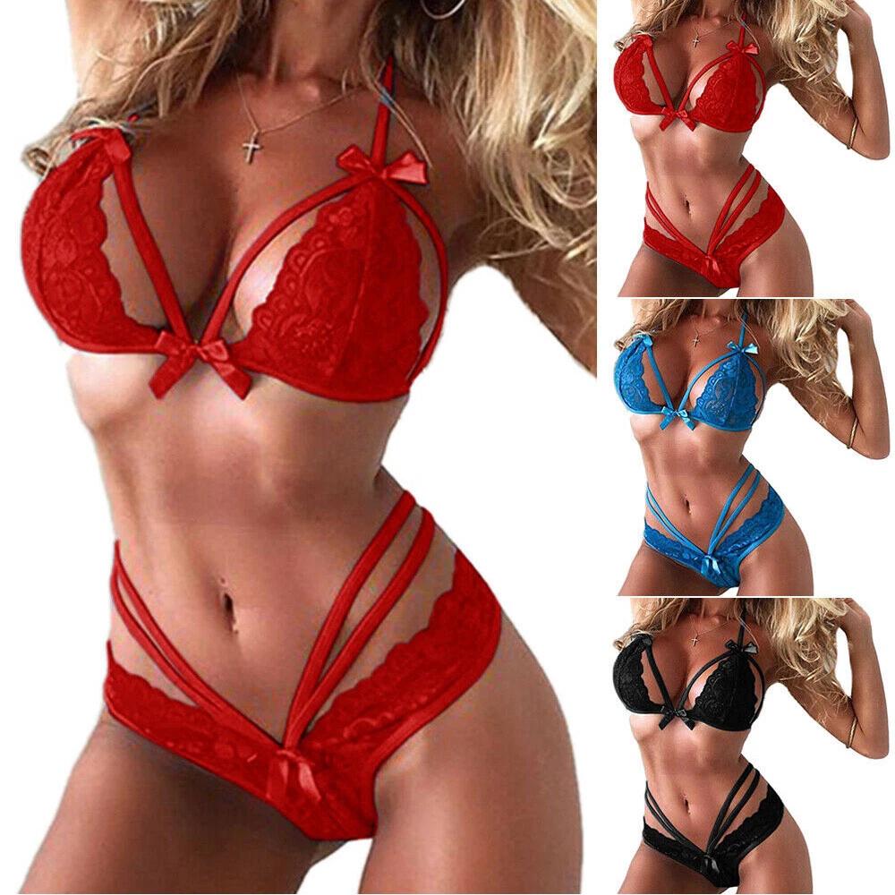 Lady Sexy Bra Lingerie Underwear G-String Thongs Sleepwear Nightwear Erotic Set