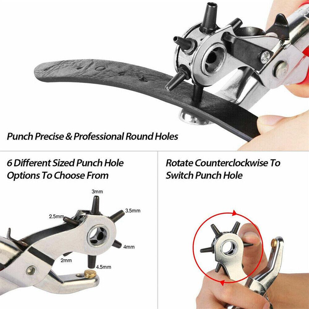 Leather Belt Puncher Eyelet Hole Paper Punch Punching Plier Revolving Craft Tool