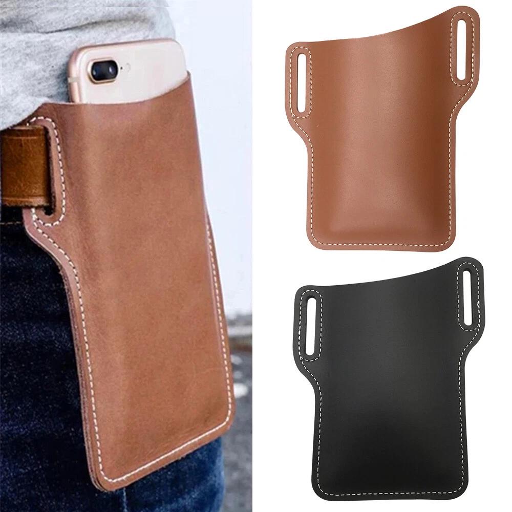1/2Men Cell Phone Loop Waist Pouch PU Leather Case Belt Pack Storage Holder Bag