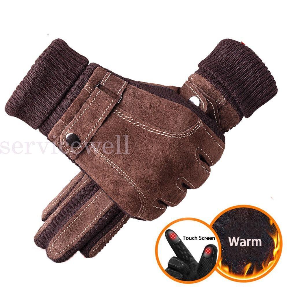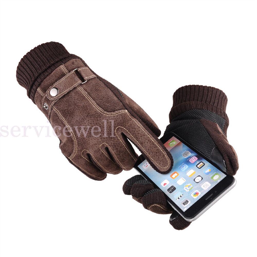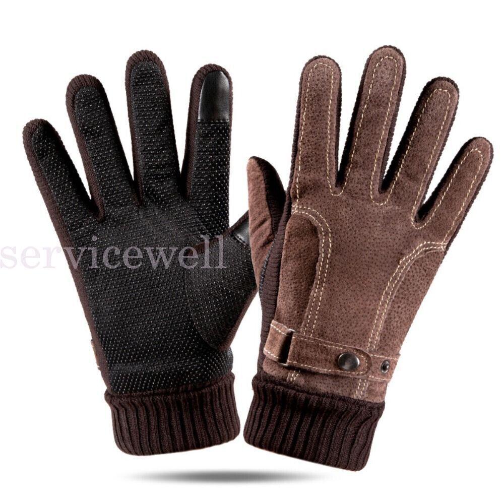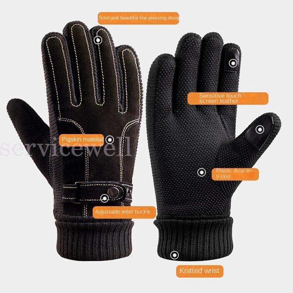 Men Winter Gloves Thermal Leather Touch Screen Warm Windproof Soft Outdoor