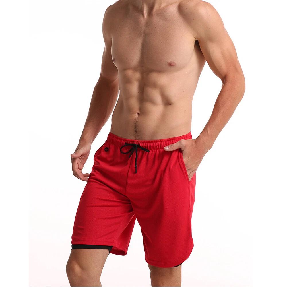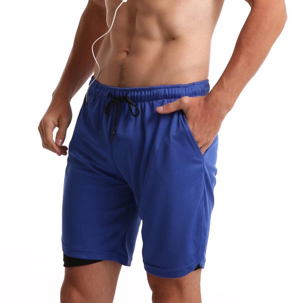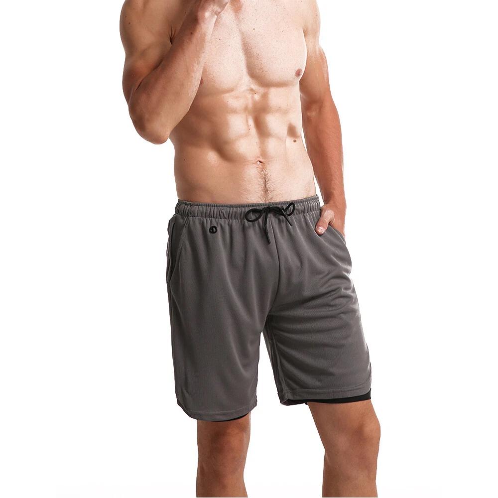 Mens Athletic 2 in 1 Shorts 7 Running Workout Gym Fitness Jogging Pockets