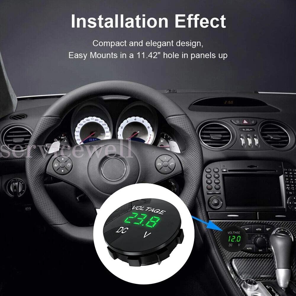 Motorcycle Digital Led Voltage Voltmeter UTV Green Boat Camper DC12V-24V