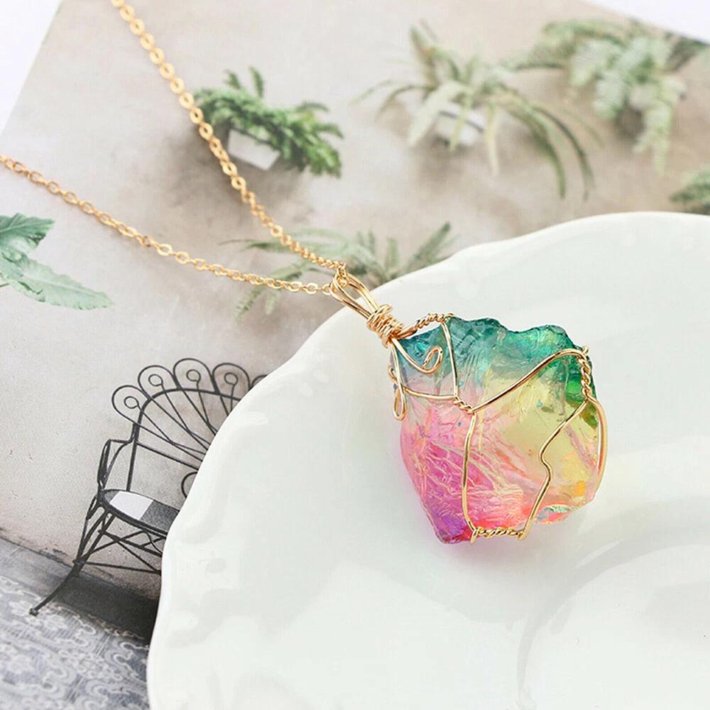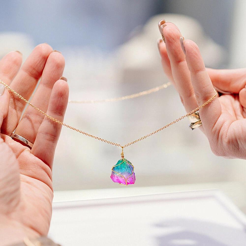 3. This natural rainbow irregular quartz stone crystal gemstone birthstone pendant necklace, when you wear it, it promotes beauty, health, good luck, and healing. It is a great gift for your best friend, significant other.