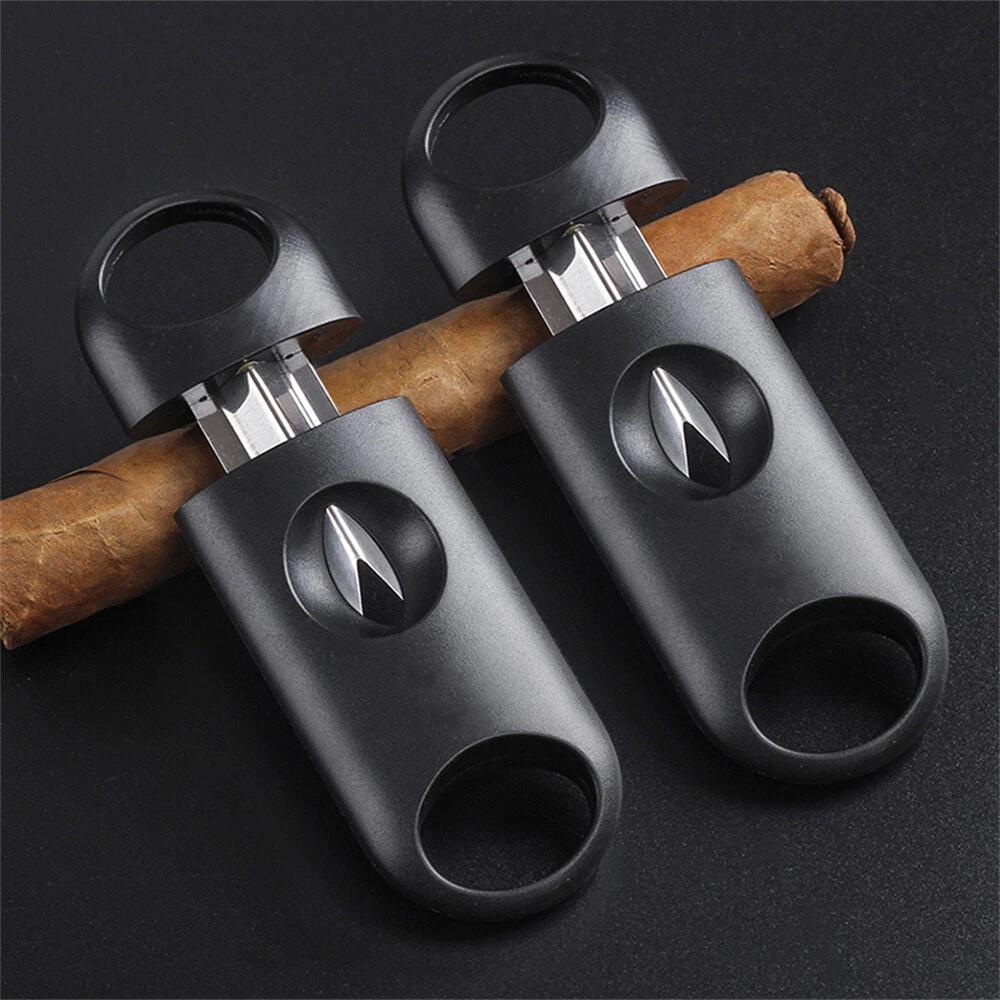 Plastic Cigar Cutter V-Cut Stainless Steel Blade Guillotine Portable Cigars Cut