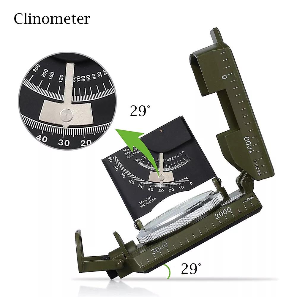 Pocket Military Metal Sighting Compass Inclinometer Camping Hiking Professional