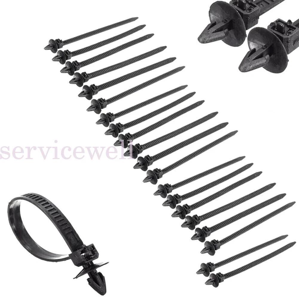 40/80x Push Mount Winged Cable Wire Ties Car Chassis Nylon Tie Zip Fixing Straps
