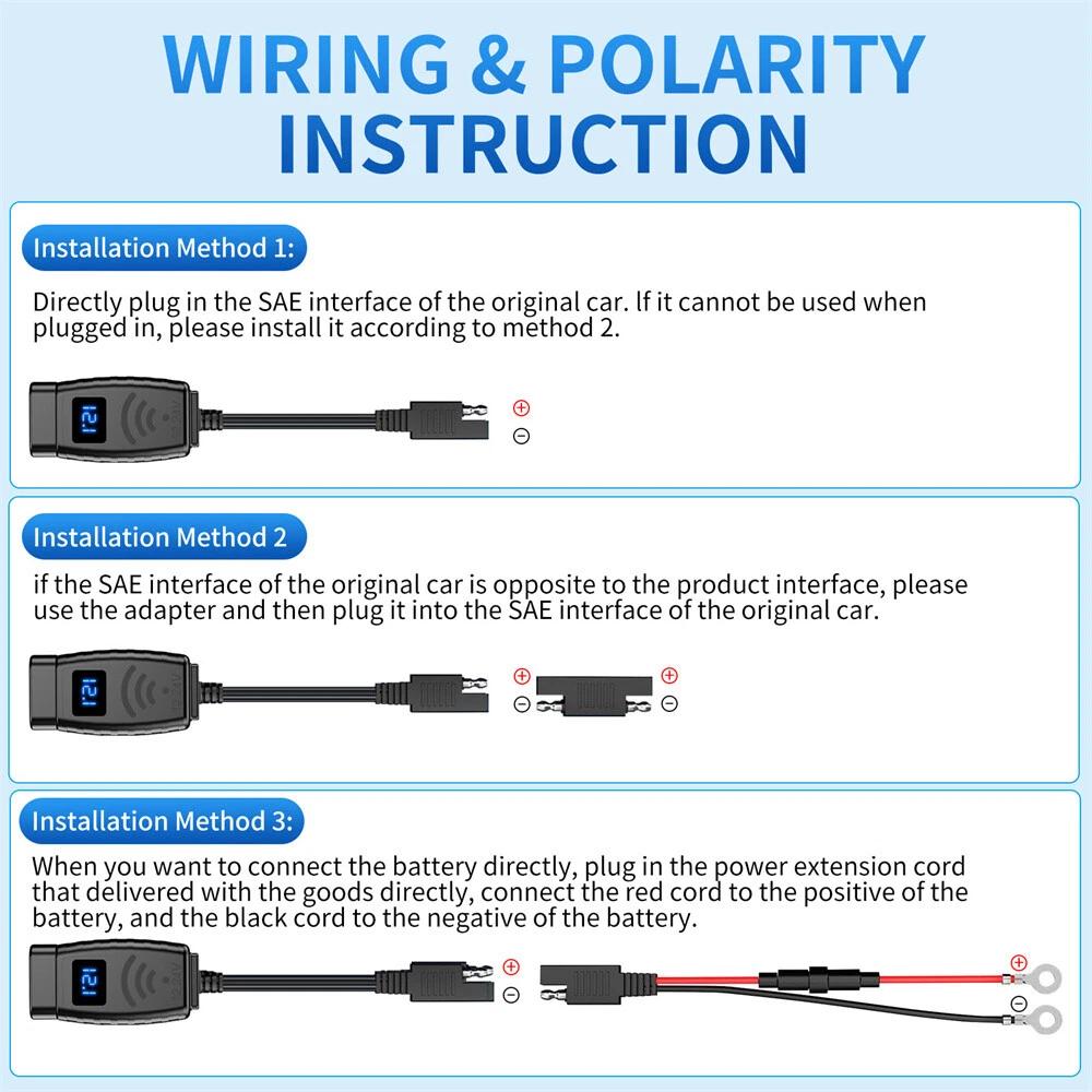 Red Screen Dual USB Port Motorcycle Fast Charger Socket LED Voltmeter Display