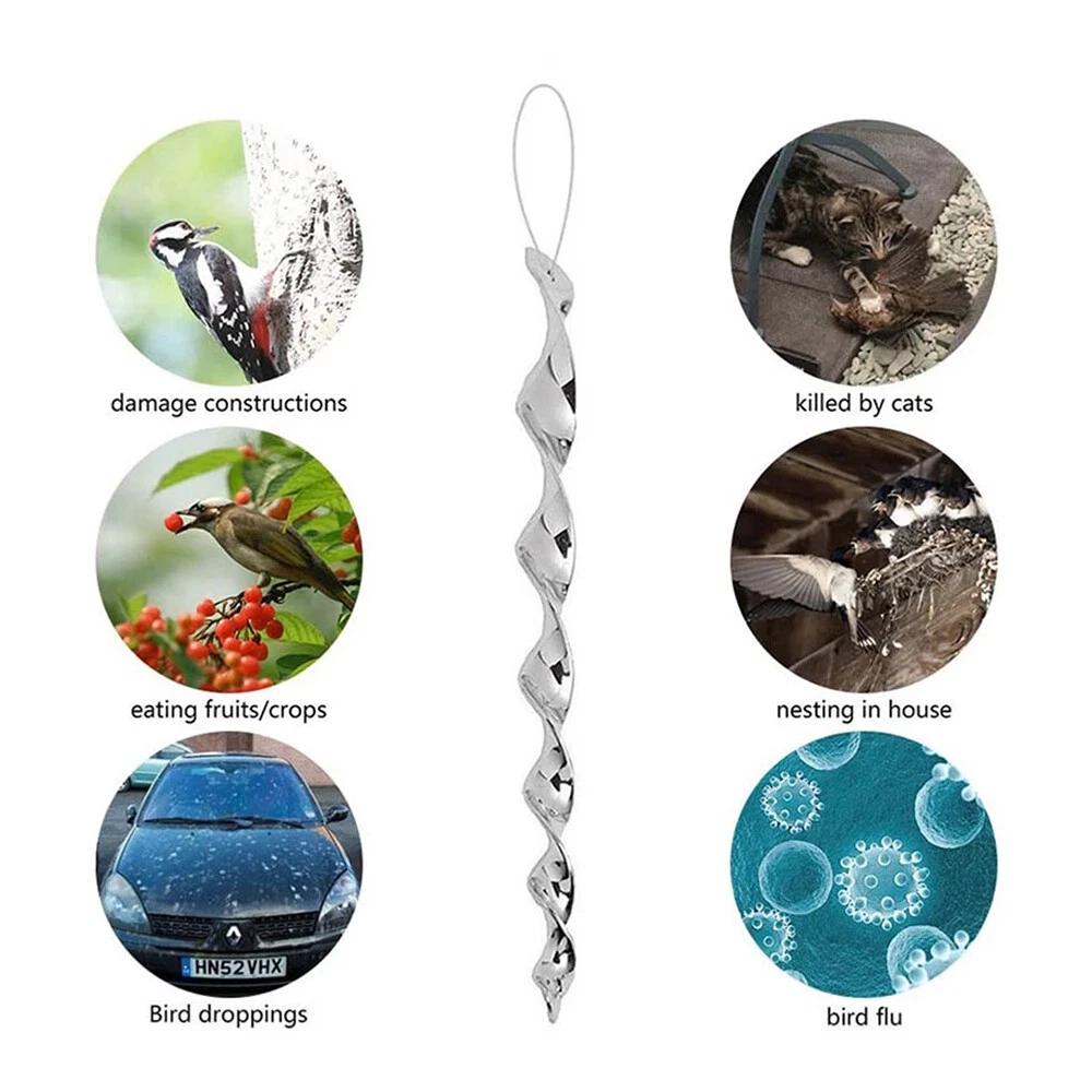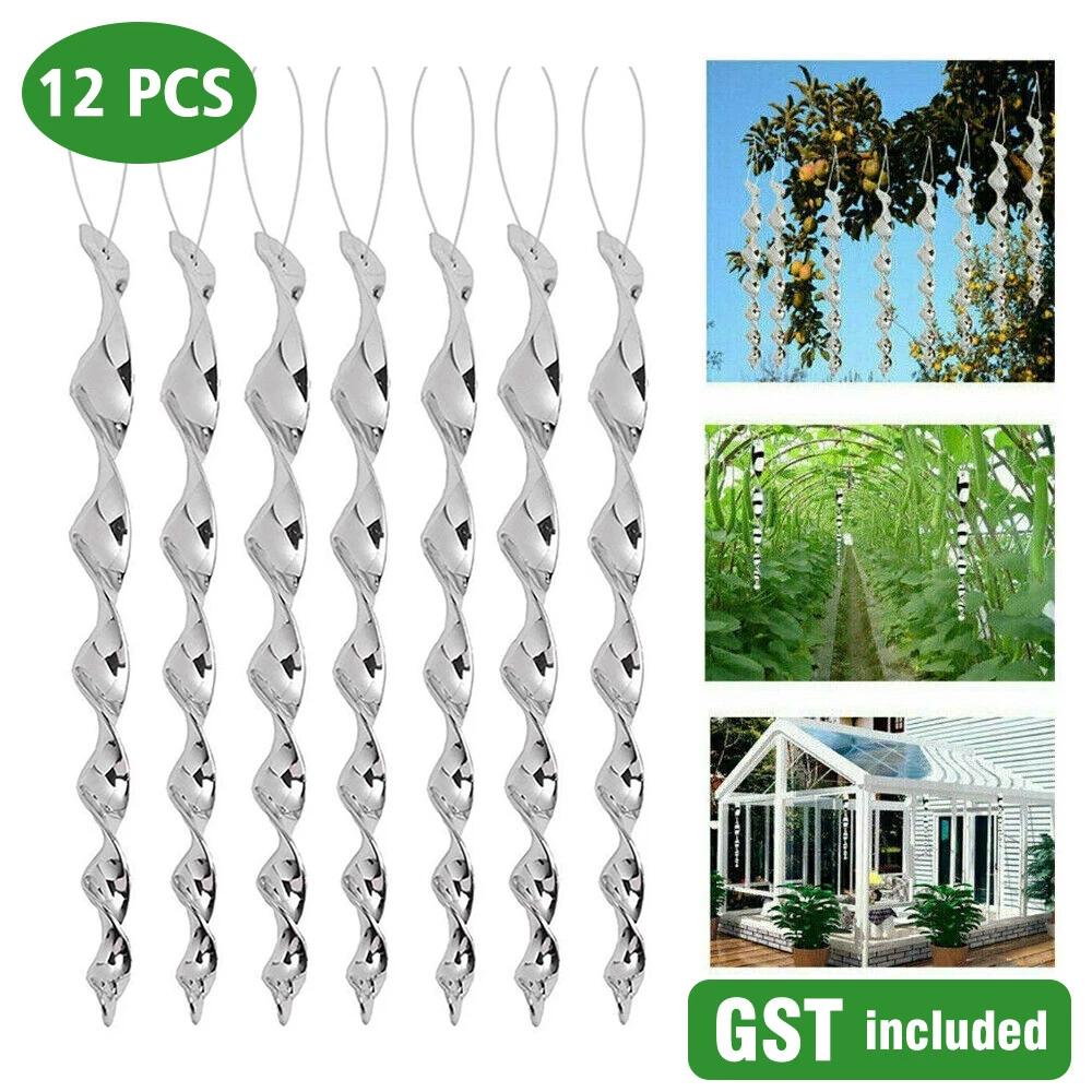 12-24 pcs Reflective Bird Repeller Repellent Wind Twisting Scarer Deterrent Rods