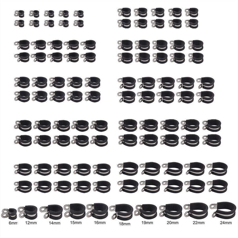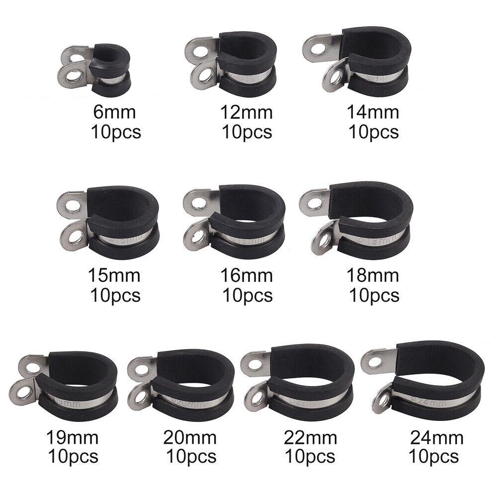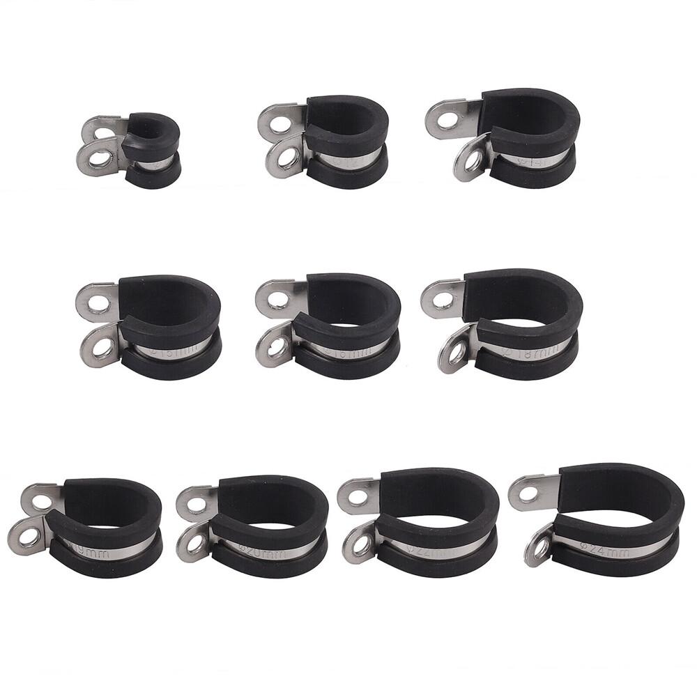 6-24MM Rubber Lined P Clips Hose Pipe Clamp Cable Mounting Clip Stainless Steel