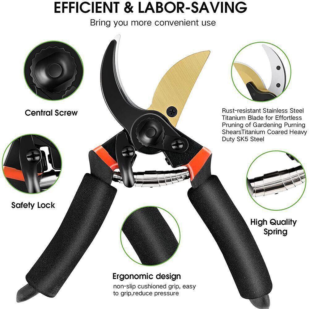 – Featuring laser sharp steel blade, stainless rebound spring, and ergonomic handle cushioned with thick spongy foam, they power through pruning tasks like a hot knife through butter.