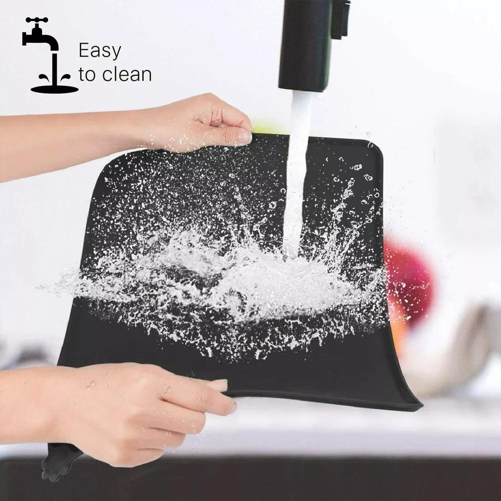 The large pet food mat is flexible, waterproof, and easy-to-clean. Simply rinse in the sink with warm soapy water, wipe with a cloth.