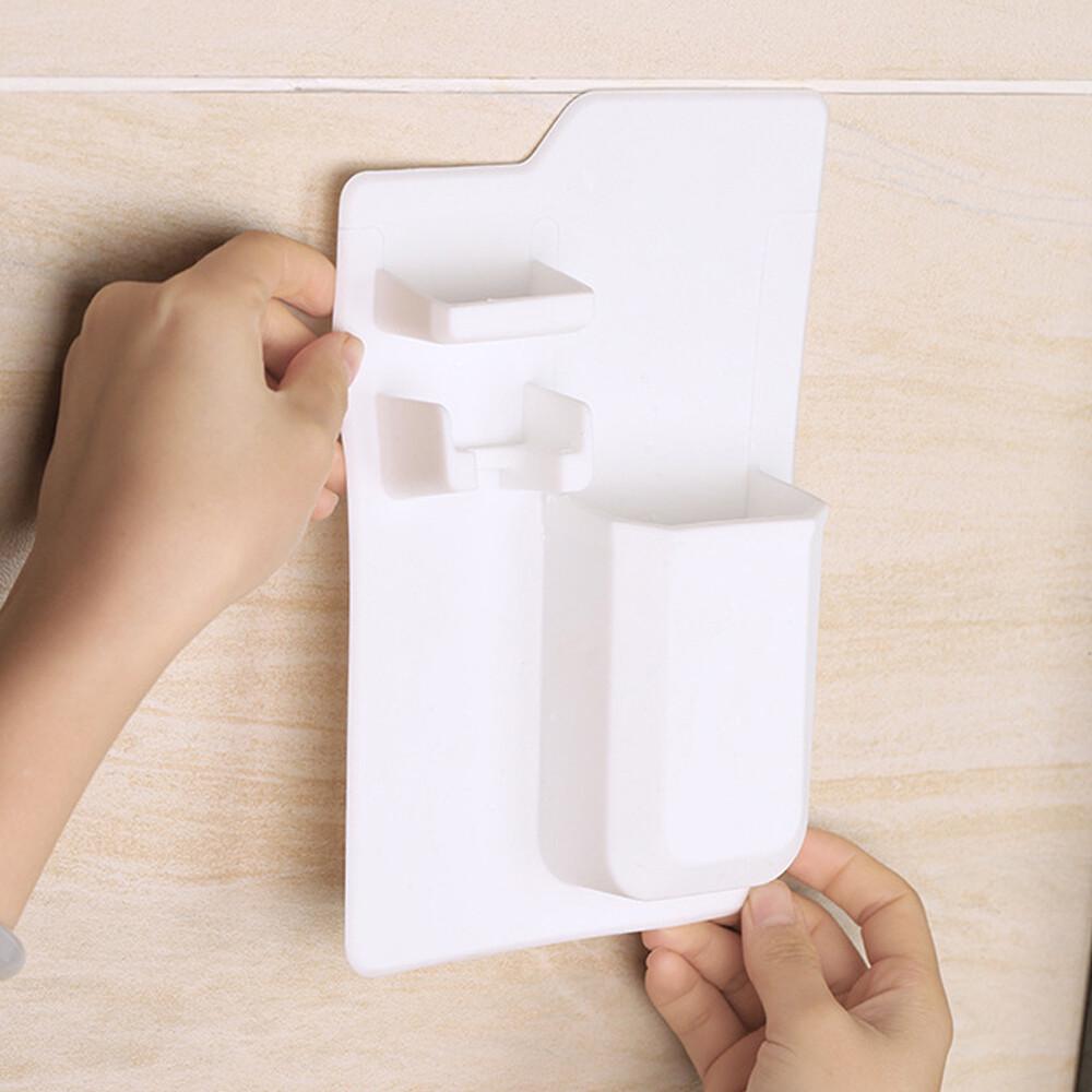 The Mighty Toothbrush Holder combines a toothbrush holder, razor holder, jewelry tray and compact shower box in one. Create a new storage space above the bathroom sink, or store toiletries in the shower.