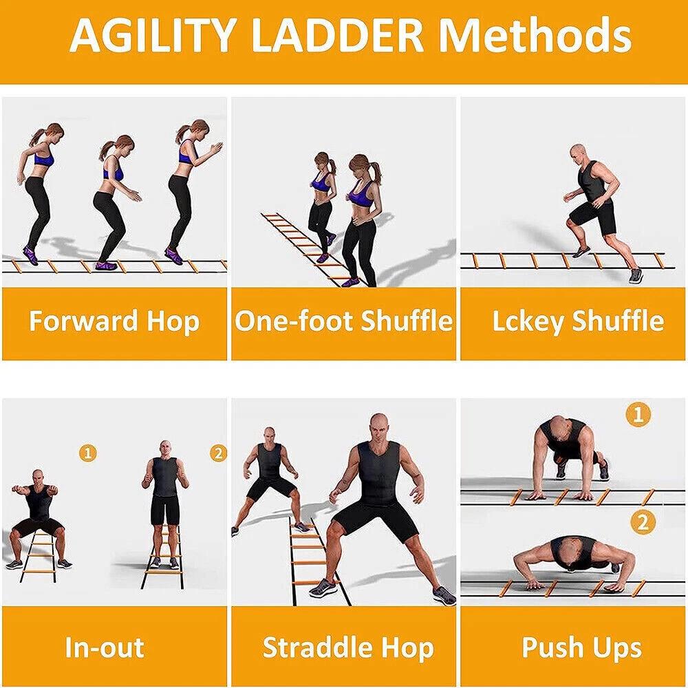 – With this agility ladder and set cones, you can maximize your acceleration, rhythm, balance, leg strength, overall body control, and even reaction time. Can improve athlete performance, including agility, footwork and cardiovascular fitness.