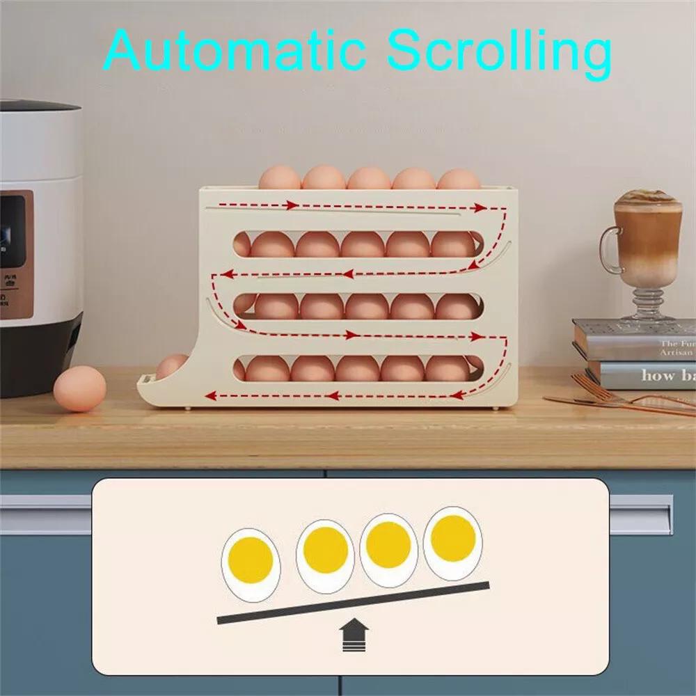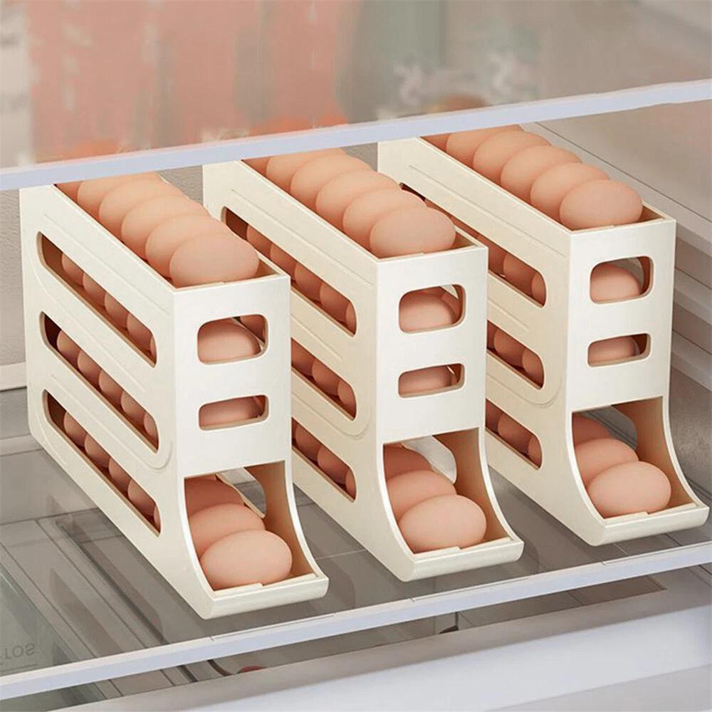 2/4-Tier Automatic Scrolling Egg Rack Holder Storage Box Container Refrigerator