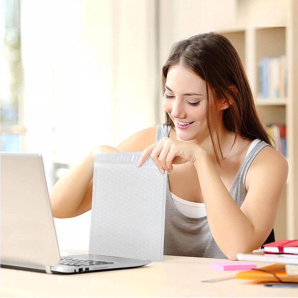 Self-Adhering Envelopes: The White poly bubble mailers come with a self-adhesive tamperproof seal. Once the envelope has been sealed, it cannot be opened without visible signs of tampering. The smooth surface of the mailers makes it easy to stick stamps and address labels.