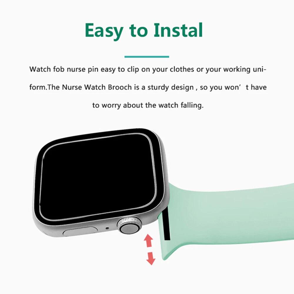 – Easy to Install. Seamless installation with a quick slide from your watch band, you can safely attach your Apple watch to your uniform. Very easy to attach or take off. The Nurse Watch Brooch is a sturdy design, so you won t have to worry about the watch falling.