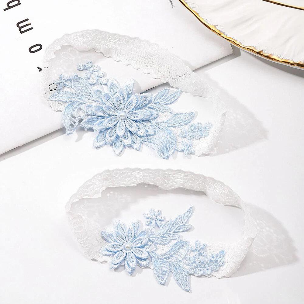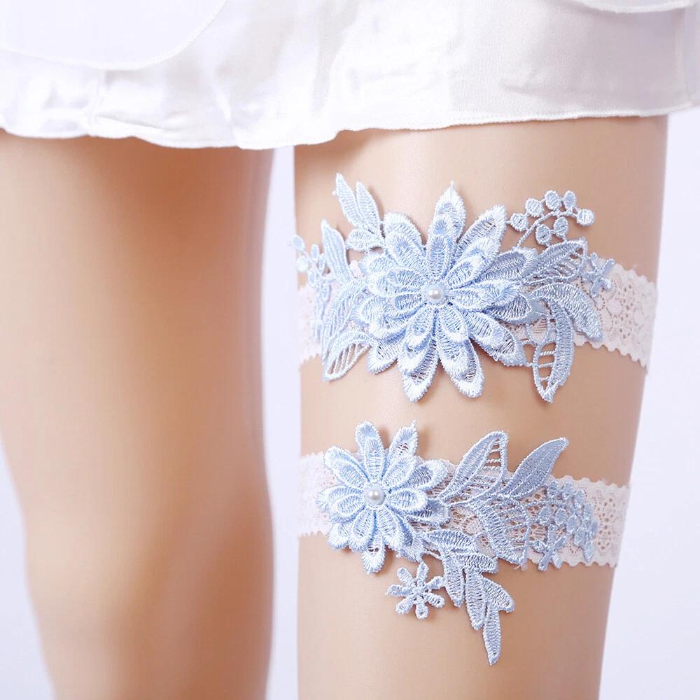 2Pc Wedding Bridal Garter Set Lace Floral Satin Tossing Bowknot Keep &Throw