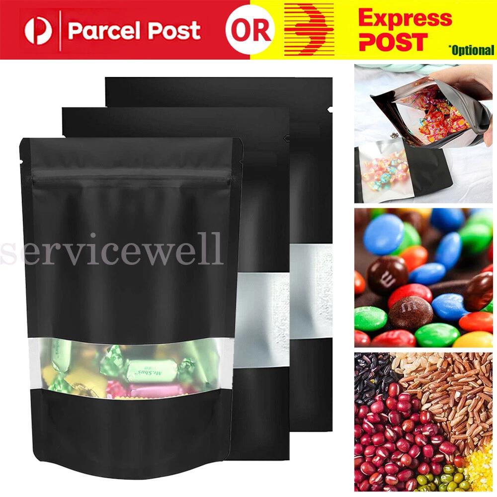 25/50/100pcs Window Pouches Black Matt Stand up Foil Bag Heat Seal Food Zip