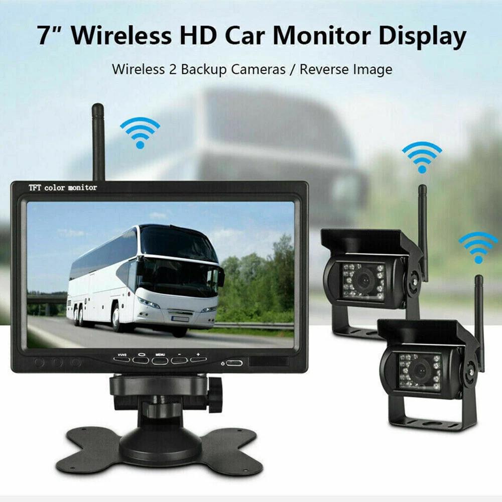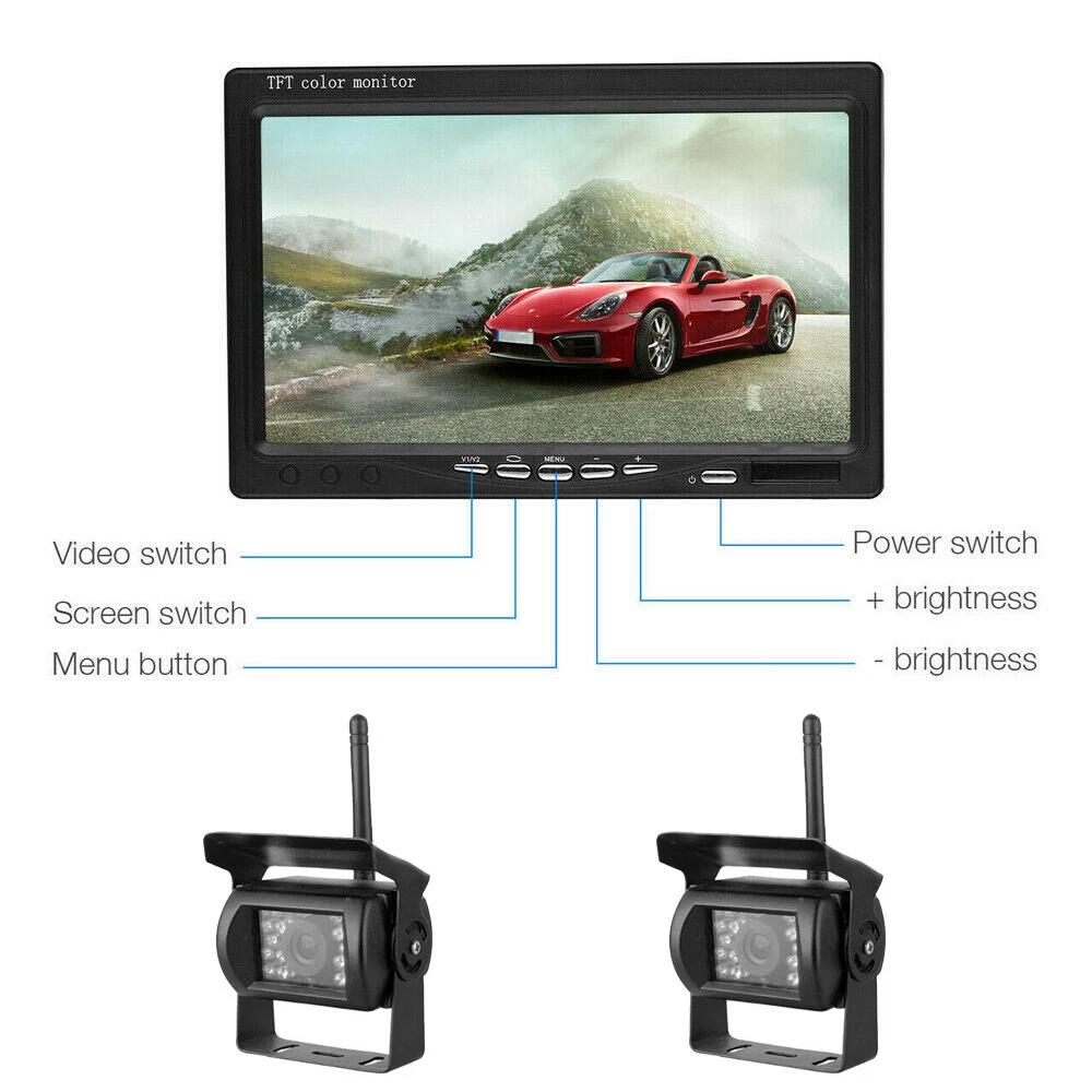 Wireless 7 Monitor 2 CCD 18 IR Color Backup Camera For Truck Caravan Tractor RV