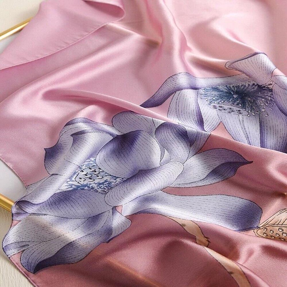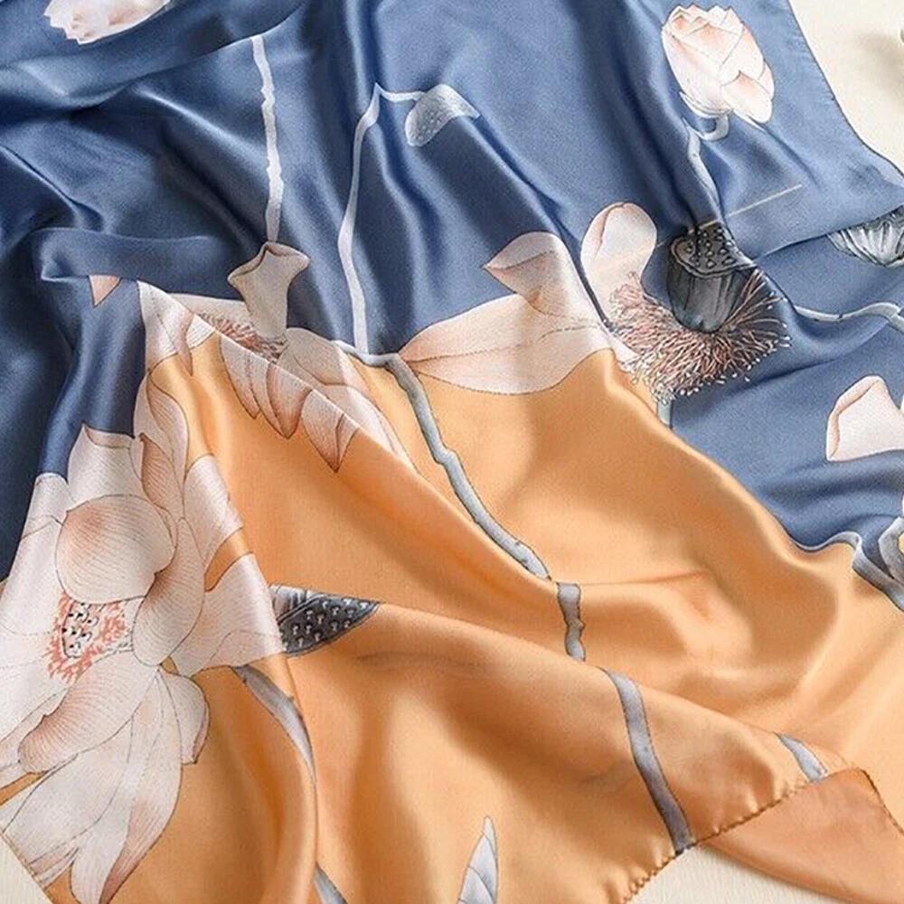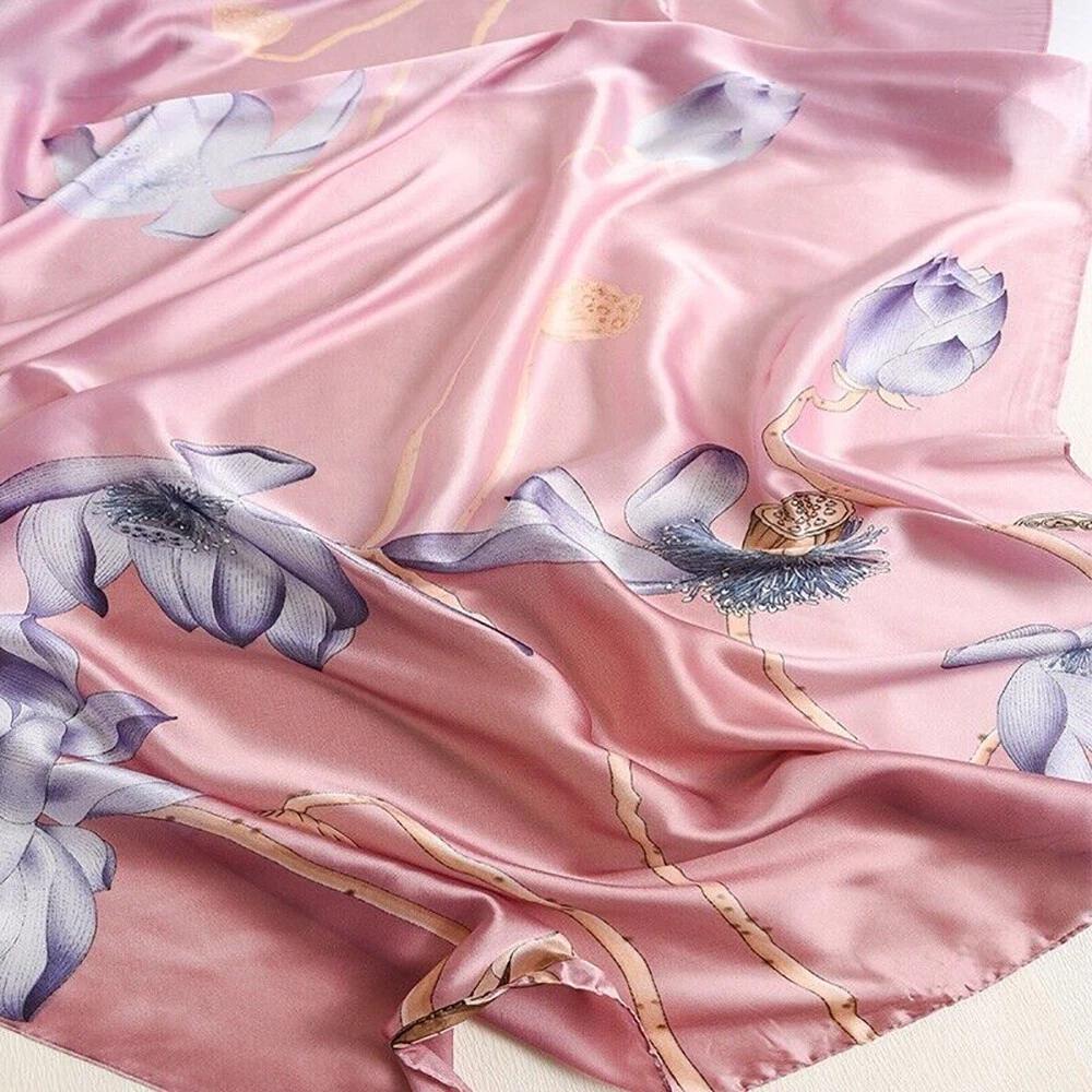 Women Lady Winter Quality Soft Warm Lotus Print Large Silk Scarf Wrap Shawl
