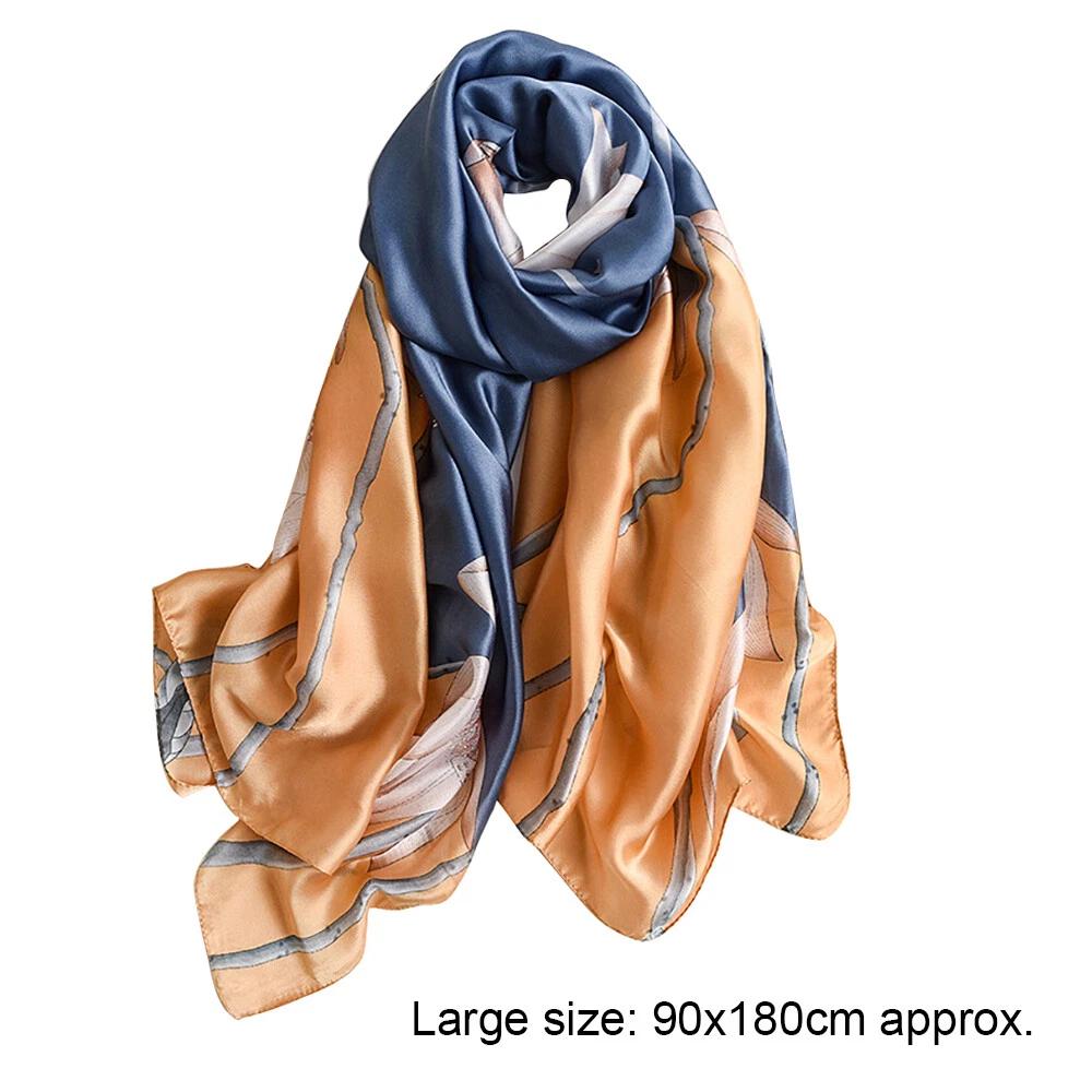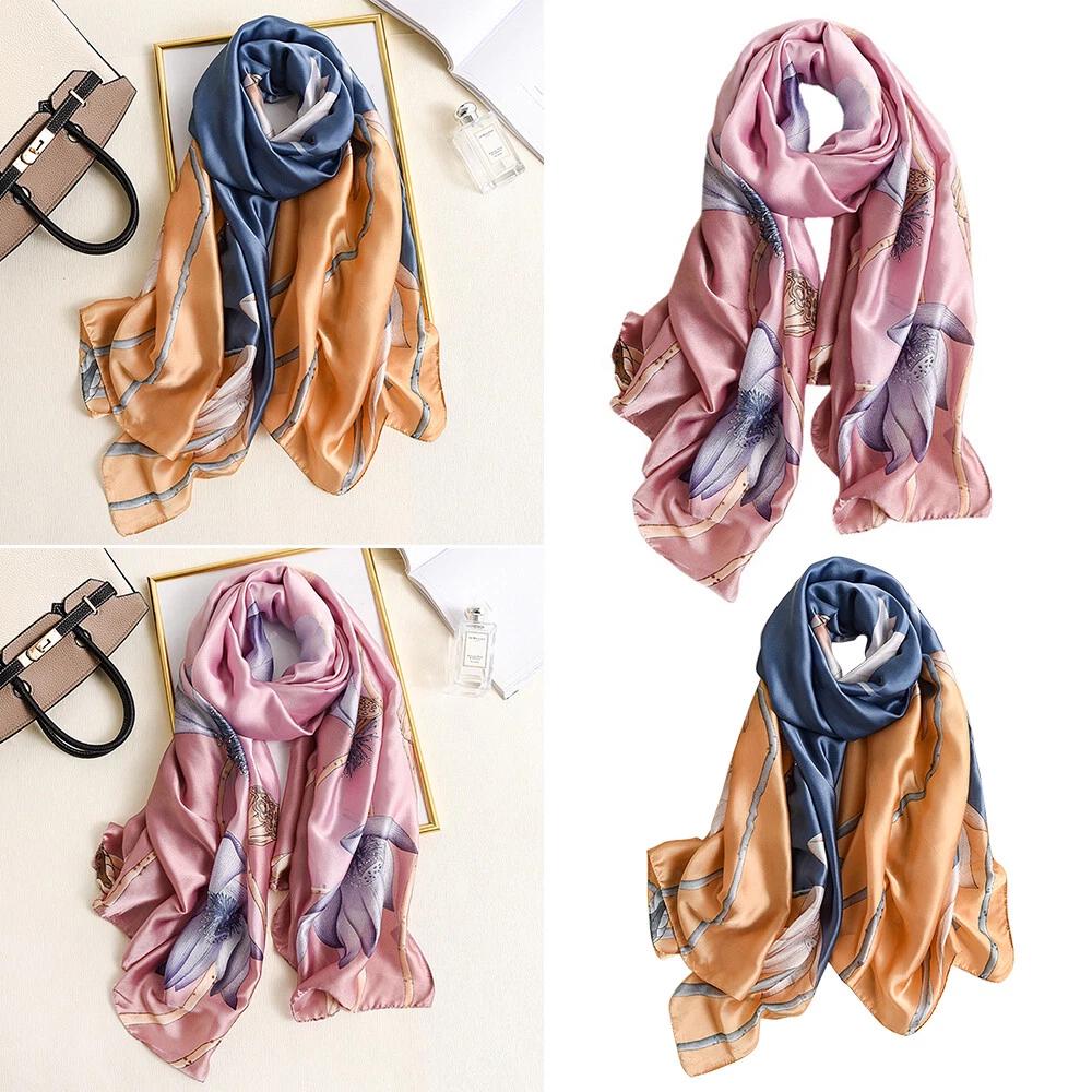 New Women Lady Winter Quality Soft Warm Lotus Print Large Silk Scarf Wrap Shawl