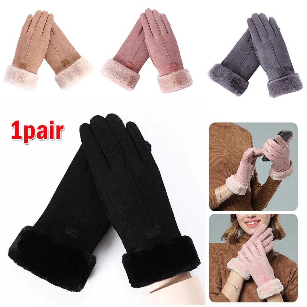 1-3x Women Winter Gloves Thermal Sheepskin Touch Screen Warm Windproof Outdoor