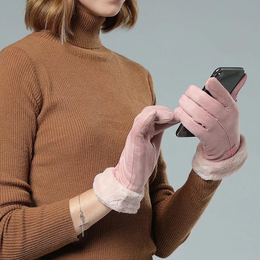 1. High-quality Materials: Using comfortable suede and touch screen fabric, you can play with your phone anytime and anywhere, and the fleece cuffs provide effective weather protection from cold air.