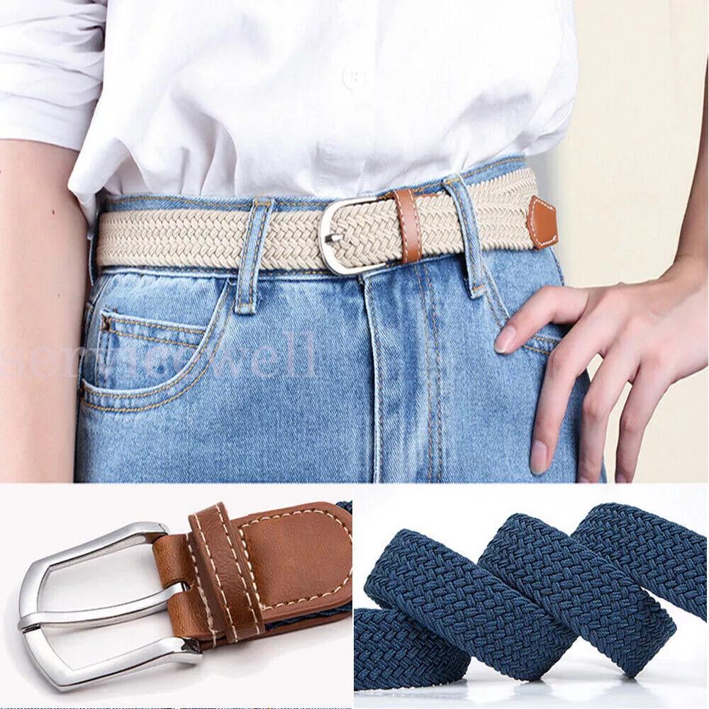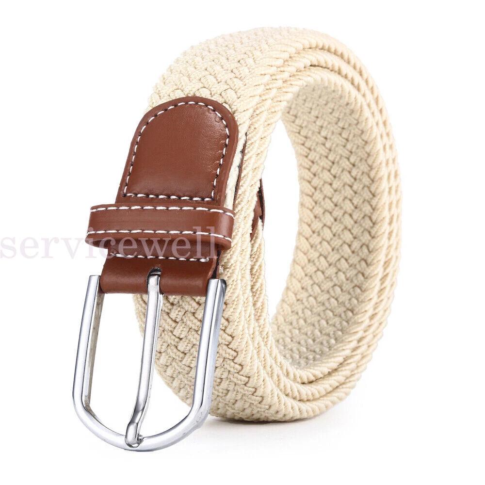 Woven Waist Straps Canvas Buckle Belt Waistband Men’s Elastic Braided Stretch AU