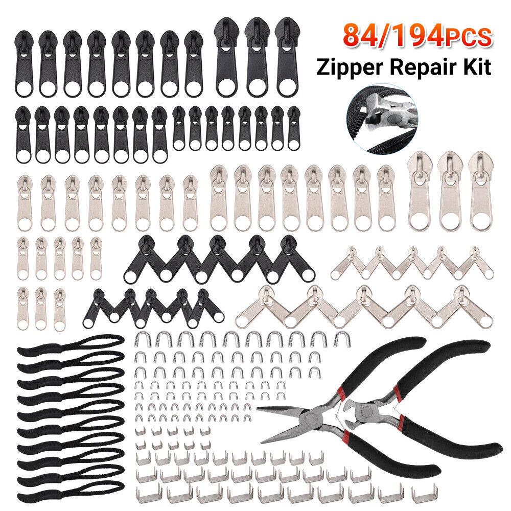84/194PCS Zipper Replacement Head Zipper Repair Kit Fix Zip Slider NEW